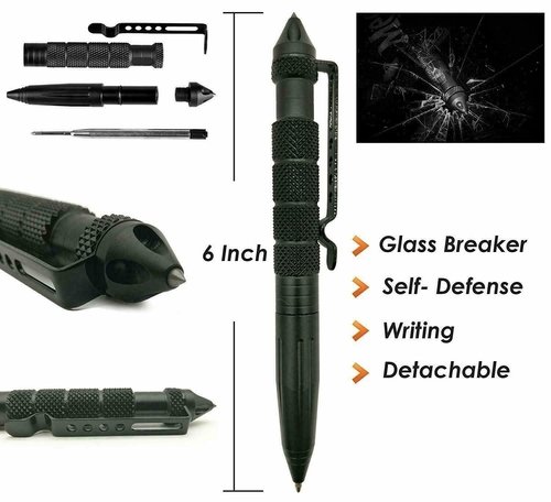 13. Emergence Tungsten Steel Pen: Made of Tungsten Steel for superior strength and portability, can break a window glass to escape in an emergency situation.