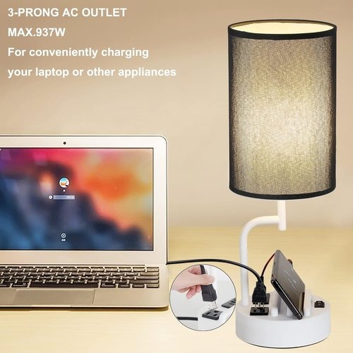 Table Lamp with 3 USB Charging Ports, Modern Desk Lamp with AC Outlet