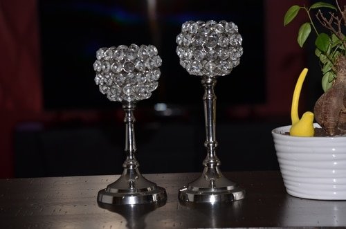 - Luxurious Handcrafted Design. Crystal Candle Holders for Table 8” and 10” in size. Made of High Quality Crystals. Hurricane Candle Holder Silver Nickel Finish Candlestick Set of 2